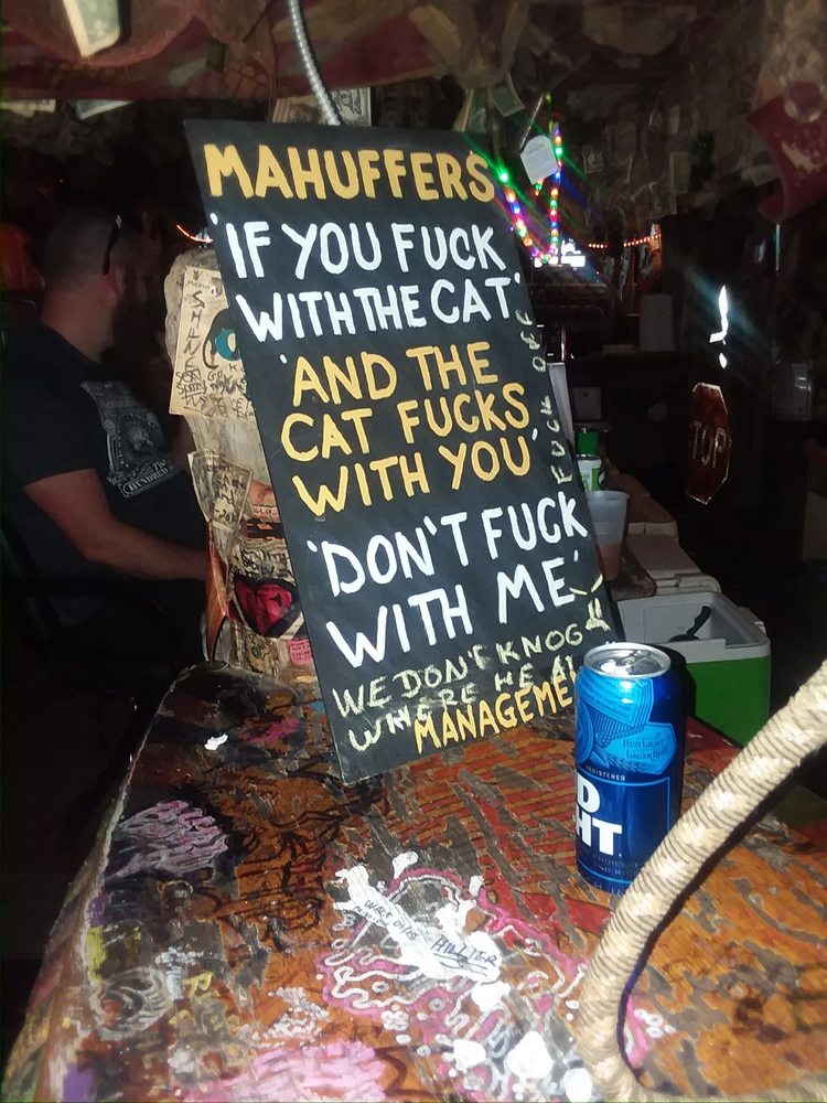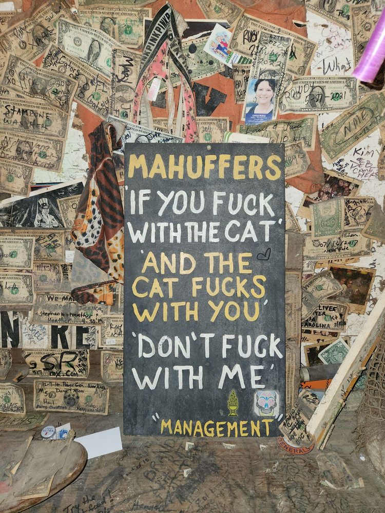 Introducing Mahuffer's, a dive bar located in Indian Shores, FL, known for its unique and eclectic atmosphere. The menu features cheap drinks, a dollar bill ceiling, and even a bar kitty. Despite mixed reviews on cleanliness, the bar offers a one-of-a-kind experience with interesting decor such as a bar made from a boat, a wood-burning stove, and even a part of a bumper car. Customers love the nostalgic feel and quirky charm of Mahuffer's. Whether you're looking for a night of people-watching or a fun spot to hang out with friends, Mahuffer's is a must-visit for those seeking a truly original dive bar experience.